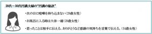 20~30代からは、「次の日に喧嘩を持ち込まない(28歳女性)」、「お風呂に入る時は大体一緒(29歳女性)」などのふたりだけの約束やラブラブな円満の秘訣が寄せられました♡