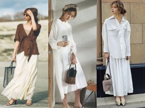 体の線が出ないヴィンテージ風ワンピに、ガウンみたいなビッグニットを無造作にON。今年っぽいアイテム選びはもちろん、ゆるさを意識したシルエットが見た目のおしゃれ感をより盛り上げてくれるんです♡ 靴&バッグも同系色でまろやかにまとめて、優しくやわらかな雰囲気を醸し出して。おしゃれなカフェにもイルミネーションで賑わう街にも映える、今どきコーデが完成します。