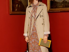 シャープなストライプと程モードなネイビーもおすすめ。ボタンを上まで留めてメンズっぽく着こなしても今っぽい!