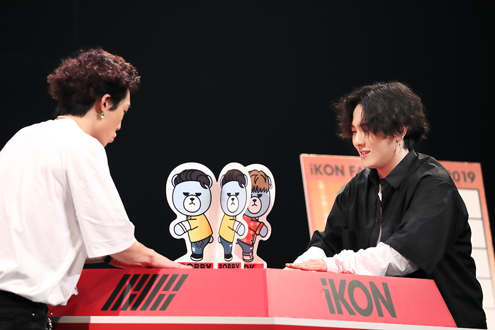 この他にも面白いゲームが続々登場。ジェスチャー対決では、BOBBYさんのお題「アルバイト」が全くほかの二人に伝わらなくて時間切れになったり、JU-NEさんのエスカレーターのジェスチャーが抜群に上手だったりととにかく面白い!そして紙相撲対決ではメンバーたちが夢中になって白熱した勝負を披露!勝負へのこだわりが随所で見られました。またゲームパート中、テーブルにあるペンなどを片付けるなど、マンネ(末っ子)のCHANさんの気遣いぶりも印象的!