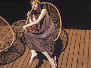 長時間移動に備えて、ベースはワンピをセレクト。軽やか素材&花柄で、ホノルルにもマッチする華やかさがいい感じ♪ 重ね着したときも統一感が出るように、ワンピとコートを茶系でリンクさせてコーデの完成度をUP。カーデを一枚仕込むことで、機内での体温調節にも役立ちます。