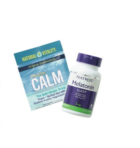 右/快眠サプリは時差ボケで寝られないときに◎。人気のホールフーズで買ったメラトニンのサプリ。左/水に溶かして飲むパウダータイプも。