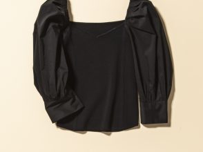 ベーシックカラーでまとめたい方には、定番カラーのタートルニットがおすすめ。クシュっとした素材や、ニットから見えるボタンがこなれ感をアップ。袖口や裾のかわいらしいデザインは、一枚で着たときにも着映え度十分♪