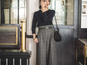 ■やわらかな淡いチェックと落ち感のあるシルエットでしなやかなルックスに