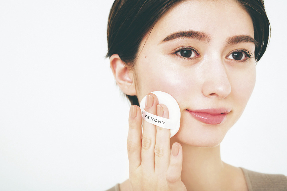 「皮脂防止下地を使わないなら、パウダーで抑えるのが一番。特にテカリが気になる部分は、粒子が細かいプレストパウダーをブラシでふわっとのせて。小鼻周りも細いブラシでしっかりとパウダーをなじませましょう」(ヘア&メイクアップアーティスト神戸春美さん)