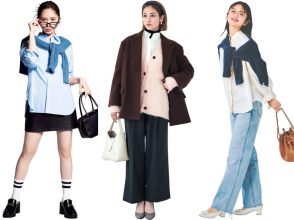かっちりテーラードジャケットはロゴTとキャップでカジュアルダウン。ボトムにはチノ素材のスカートを合わせて、トラッドムードが漂う旬の着こなしを完成させて。足元はリボンパンプスでほんのり甘く。クラシックなカラーを落ち着いたベージュで挟むと大人っぽい抜け感もプラスできます。