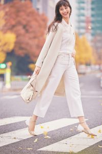 【6】旬ニット×白パンツで冬のフェミニンワントーン