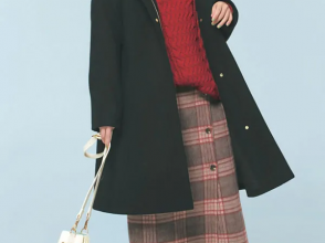 顔をすっぽり包むスタンドカラーにぷっくりボタンがレトロムード満点! ピンクバッグや白パンツのフェミニンカラーでまとめて愛嬌たっぷりに着るのがおすすめです。