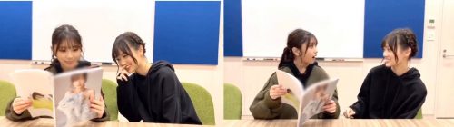 かわいい後輩4期生も写真集を見てくれました! なぜか愛しの齋藤飛鳥センパイも一緒♡ 10代のみなさまには刺激が強いかも? なんて心配をよそに「かわいい!」「きれいです!」の連発いただきました!