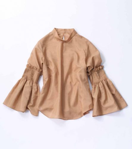 ひじ部分にあしらったシャーリング加工は、着心地の良さ&華やかさをアップさせてくれる上に、華奢見えも叶います。ほんのり透ける素材とベージュカラーの絶妙な組み合わせは大人っぽさもばっちり!
