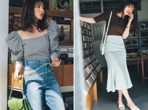 グリーン系のコットンシャツにチョコブラウンのシアーカットソーをINすると、おしゃれムード漂う最旬レイヤードが完成。オフホワイトデニムがいい抜けとなったきれいめカジュアルは、誰の目にも好印象。足元はキャメルのスエードパンプスで明るく仕上げるのが推し♡