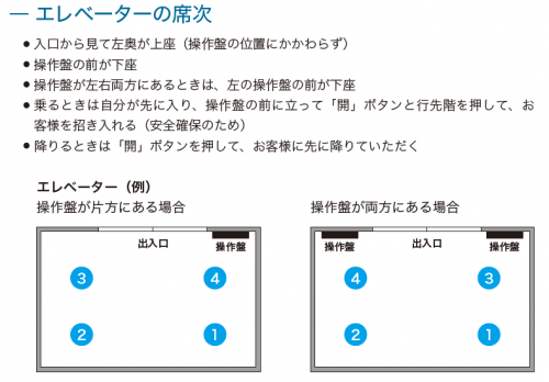 今回はその中でもエレベーターとタクシー(自動車)の意外と知られていない席次についてご紹介します。