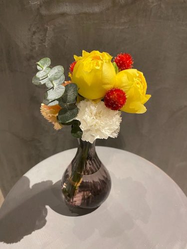 花は自然のものなので、あえて茎がすこし曲がっているものや特徴のあるものを飾ることで、1輪であってもとても印象的で風情が生まれインテリアのワンポイントになりますよ』