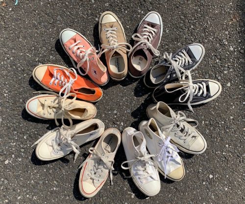 白っぽい色とそれに近い生成りだけで6足…あります。さすがスタイリスト…圧巻でございます! これらは決して「コレクション」しているわけではなく、どれも普段よく履いているとのこと。コンバース好きになったきっかけ、選び方のコツ、コーデのポイントを聞いてみました。