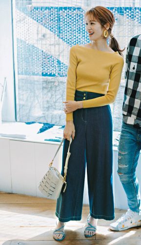 ■ワイドデニムで肌見せトップスをヘルシーに受け止める