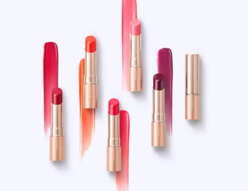 シルキーフィットパウダー配合で、唇の表面はなめらかに。桜の花エキス、椿油、杏子油の贅沢な美容成分を配合し、唇にうるおいを与えます。ぱさつき感なく上品なセミマットリップに。チューブの先端は斜めカットになっているので、口角まで美しく塗ることができますよ。