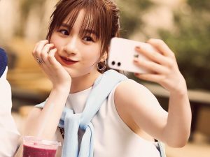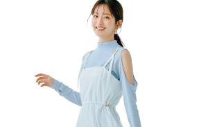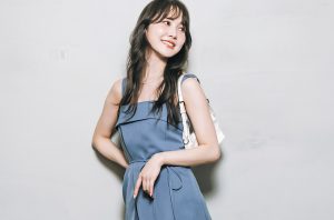 【2】アイスブルーのミニワンピで清涼感のあるかわいさを