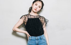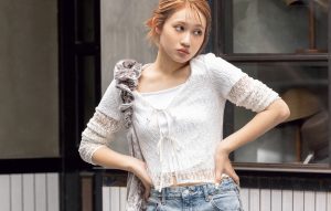 【3】デニムパンツ×レーストップスの甘辛MIXコーデ