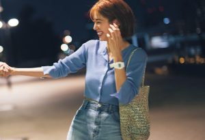 暑い日こそ、リラックス感のあるデニムで肩の力を抜いたおしゃれを満喫。淡いデニムにブルーのラメ入りクロップドカーデを合わせて、夏らしい爽やかなワントーンに。仕上げにシルバーのバッグを合わせて、シンプルコーデをキレよく着こなして。