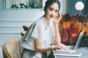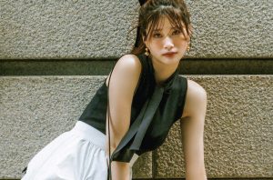【2】華やぐボウタイブラウスでワンツーコーデを更新
