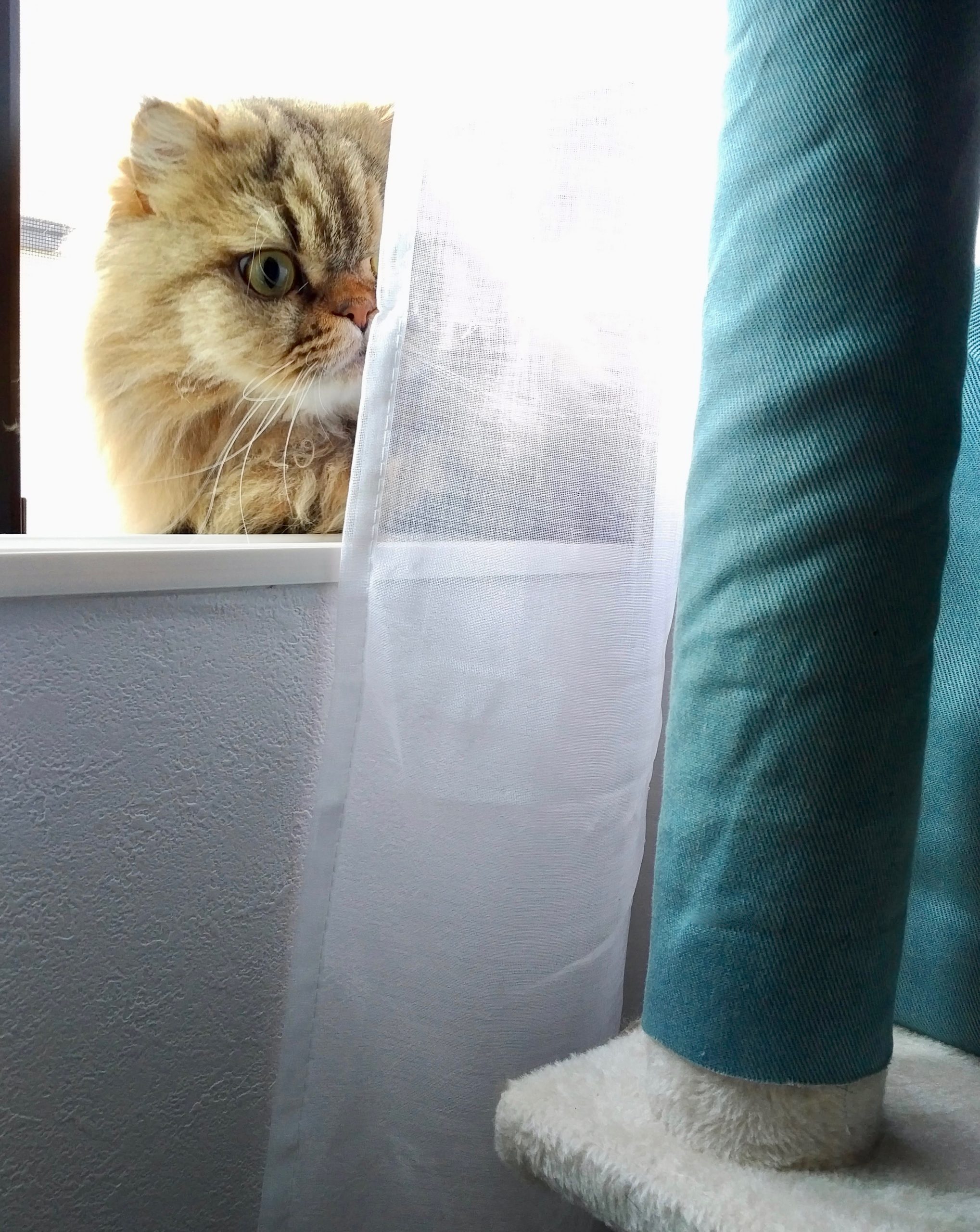 猫の世界では目を合わせ続けてしまうことが「やんのかコラ」的な合図になってしまいますが、ここまであからさまにニラまれると逆に見ちゃいます。「暇なら撫でろコラ」と絡まれることもあります。