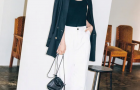 オフィスでも活躍してくれそうなセットアップは、ブリティッシュ調のグレンチェック柄。ひざ丈のスカート見えキュロットも、注目度高めなアイテム。初めて挑戦するなら、セットアップで取り入れちゃうのもアリ! インナーはシンプルに黒ニットをしのばせて、メリハリ感のある着こなしに。
