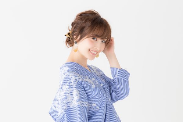 ヘアクリップや金ピンがさり気ないポイントに