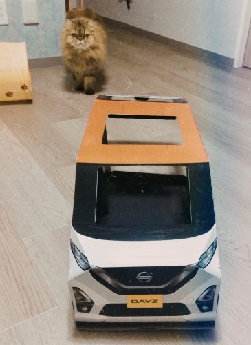 我が家の暴君(愛猫)トラちゃんの日常を、猫の言いなり飼い主が身勝手に発信するこの企画。トラちゃんにプレゼントされた、ねこ用日産軽自動車「おうち用にゃっさんデイズ」。