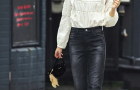 【9】白Tシャツ×黒ライダースジャケット×デニムパンツ