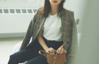 ベージュ系のジャケットにロゴTとグリーンのタックパンツをコーディネート。ダブルGのロゴを効かせたバイカラーのショルダーバッグで着こなし自体もクラスアップ。黒のローファーパンプスも程よいヴィンテージ感を醸してます♪