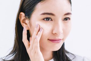 ①メイク前のスキンケアでたっぷりと保湿し、しっかり浸透したことを確認してからメイクを開始しましょう。そして、下地もクリームをのせるように全体に優しくオン。