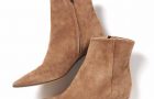 【2】茶色ワンピース×ベージュジャケット×ベージュブーツ