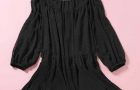 ビッグカラーワンピは小顔見えも満点♡ シックな黒を選べばミニ丈でも大人っぽく着られます。ブーツは筒が太すぎないものを選ぶと全身が女らしくまとまります。お団子ヘアやバニティバッグでほんのりかわいらしさも意識して。