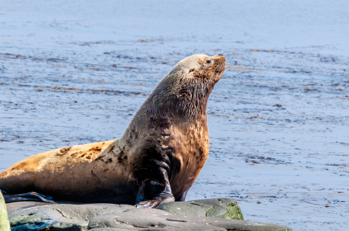 アシカ科の哺乳類。雄は体長約4メートル、体重1トンに達する。体は黒褐色で、頭の幅が広くて後頭部が低く、ひげがある。(一部抜粋)