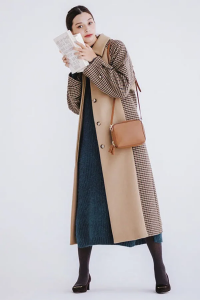 美脚パンツ×オフタートルのシンプルな着こなしに、ブラウン×グリーンの配色リバーコートをON。さりげなくトレンドを取り入れたネオコンサバスタイルは、好感度の高い今っぽコーデにぴったりです。