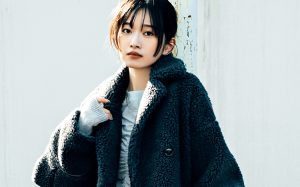 【9】ビッグカラーデザインのボアコートで顔回りが映える