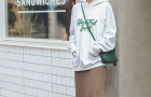 【3】ブラウンワンピース×白ロゴフーディ
