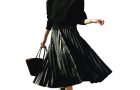 注目のオールブラックコーデは、ざっくりタートル×プリーツスカートでレディに仕上げて。重厚感がありつつもどこか抜け感があるのは、レザー調のプリーツが生み出す軽やかさのおかげ! 小物も黒で統一してモードな全身ブラックを楽しんで。