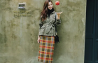 チェックのロングスカートに鉄板の黒ハイネックニットを合わせた上品コーデ。大ぶりなチェック柄が秋冬っぽく、かわいくも大人っぽくも着られます。超MINIバッグとボリュームのあるブーツなど、小物は遊びを効かせるとコーデに今っぽさがプラスできます。