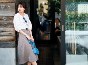 たまごイエローパンツと軽やかシアーシャツで淡色コーデを満喫。お花のようなモチーフ刺しゅうをあしらった透け感たっぷりのシャツがトレンド感あり。肌なじみのいいイエローパンツでまろやかに着ると、繊細な雰囲気はそのままに、フレッシュなオーラが上昇します。