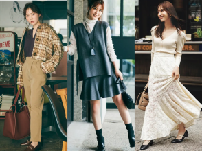 肌なじみのいいイエローはベージュや白とよく合うので、トレンドのワントーンコーデがおしゃれに決まるのも魅力。黒やブラウンといった締め色小物を効かせても大人っぽく仕上がります。