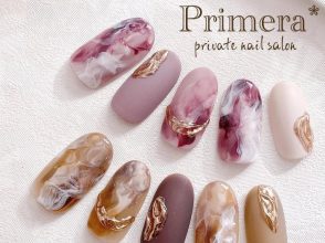 とろけだしそうな、ちゅるんとしたチョコレートネイル♡ ダーク・ミルク・ホワイトチョコを思わせるカラーが絶妙です。金箔とビジューもたっぷりで、華やかな指先に仕上がります♡