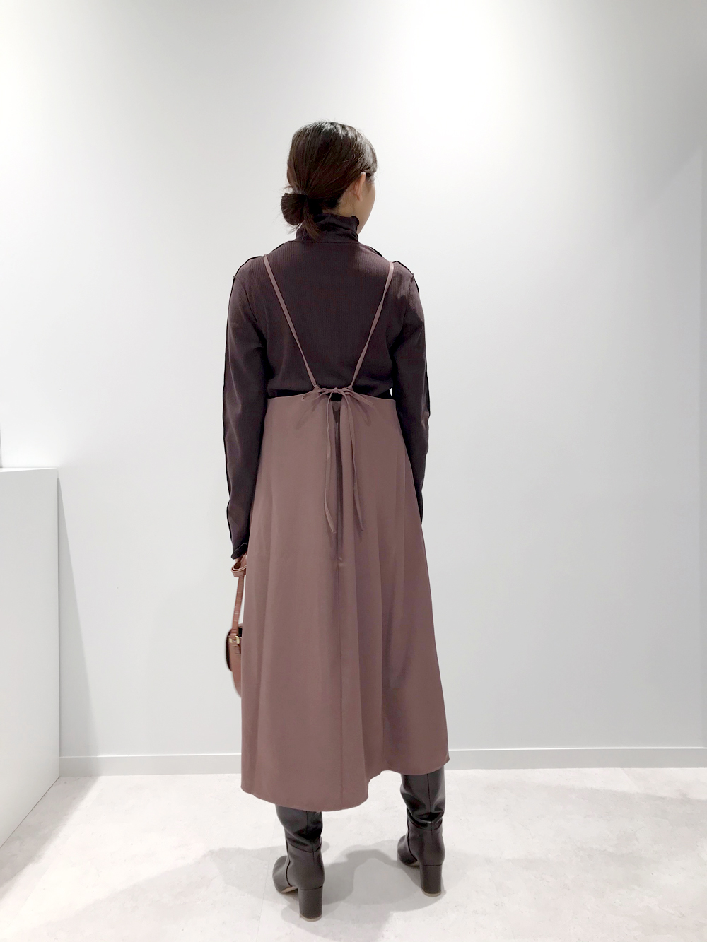 冬の着回しアイテムとしてダントツの活躍ぶりを見せてくれそうなキャミワンピース。大人っぽく着られるVネックや細いストラップなど、ミニマルな中に計算され尽くしたデザイン性の高さに注目!