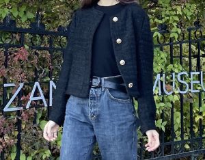 【3】デニム×スニーカーをツイードジャケットで大人めに