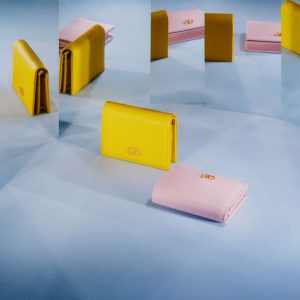 さりげなくVロゴを配したグレインカーフのスモールレザーグッズはウィメンズの人気モデル。