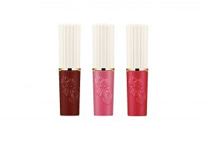 みずみずしく華やかに咲き誇る花をイメージした光沢のあるオイルタイプと、繊細で美しいドライフラワーをイメージしたマットな質感の2種のリップティント。高級感あふれるピンクゴールドに、ハートからカラーがチラ見えするキュートなビジュアルも◎。