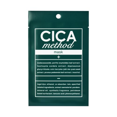 お疲れ肌のスペシャルケアには「シカメソッド マスク」。1枚タイプなのでお泊まりなどに持って行くのも良さそうです。肌に吸い付くような密着感で、ツボクサエキスをはじめとする植物成分が素早く肌に浸透。マスクで荒れた肌やニキビが気になる肌も、これさえあれば無敵!