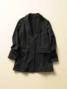 美人度を格上げしてくれるブラックは、羽織り代わりに使うジャケットにも取り入れたい♪ コーデがシャープな印象にまとまるので、お仕事スイッチも自然とON! 肌触りのいいジャージー素材で、きちんと見えとノンストレスな着心地の両方が叶うのもポイント。シワになりにくいので、仕事で外回りをするときにもおすすめです。
