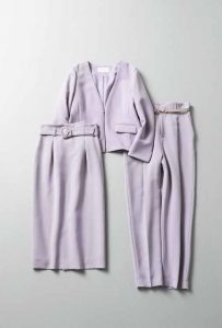 堅くなりがちなノーカラージャケットは、ムードのあるラベンダーを選ぶとやわらかで女らしい雰囲気に。トレンド感や春っぽさをアピールできる優れものです♡ ハリのある素材できちんと感も兼ね備えているジャケットはオフィスコーデにもぴったりです。