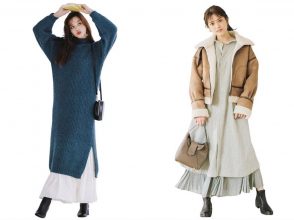 コート〔共布ベルト付き〕¥29,000(COCO DEAL/ココ ディール)、ニット¥9,500(AKTE)、カットソー¥1,990(AMERICAN HOLIC<アメリカンホリック>)、スカート¥11,000(MERCURYDUO ルミネエスト新宿店)、バッグ¥5,900(アンビリオン<カカトゥ>)、靴¥24,000(ダイアナ 銀座本店<ダイアナ>)、ネックレス¥12,500(GEMMA ALUS<ALUS>)